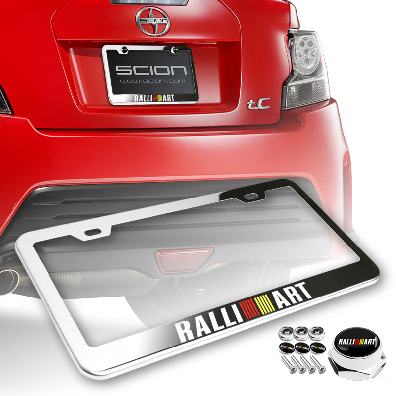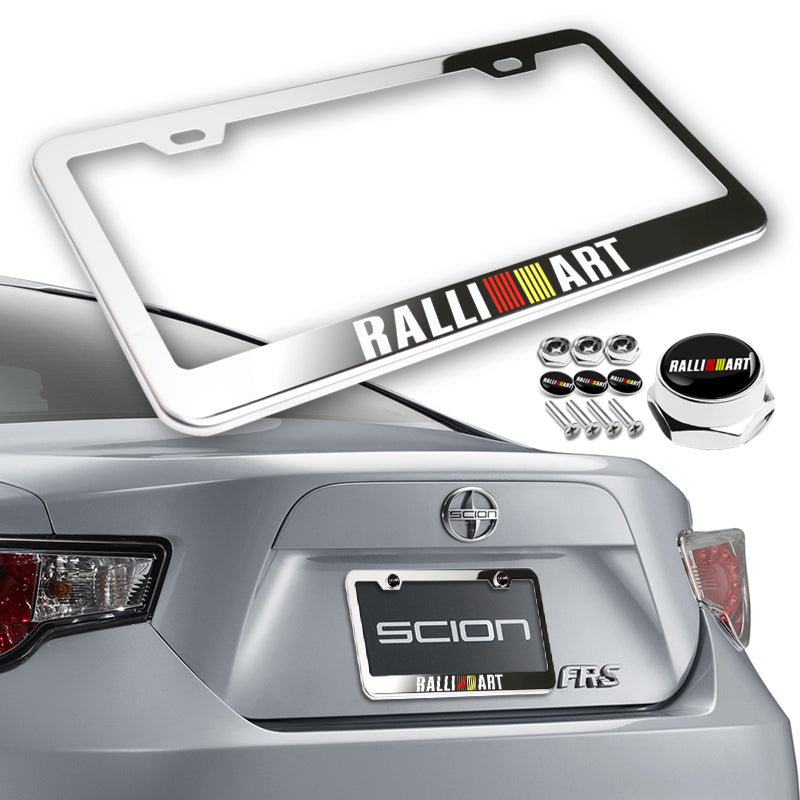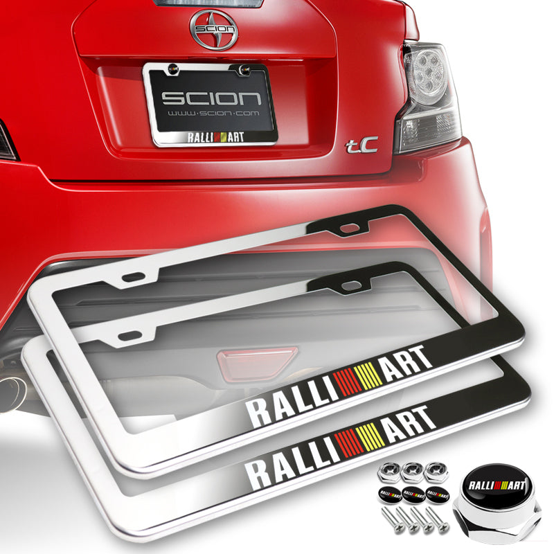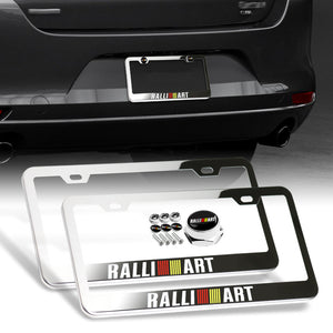 New Ralliart 2 pcs Stainless Steel License Plate Frame with Caps Bolt Screw Set