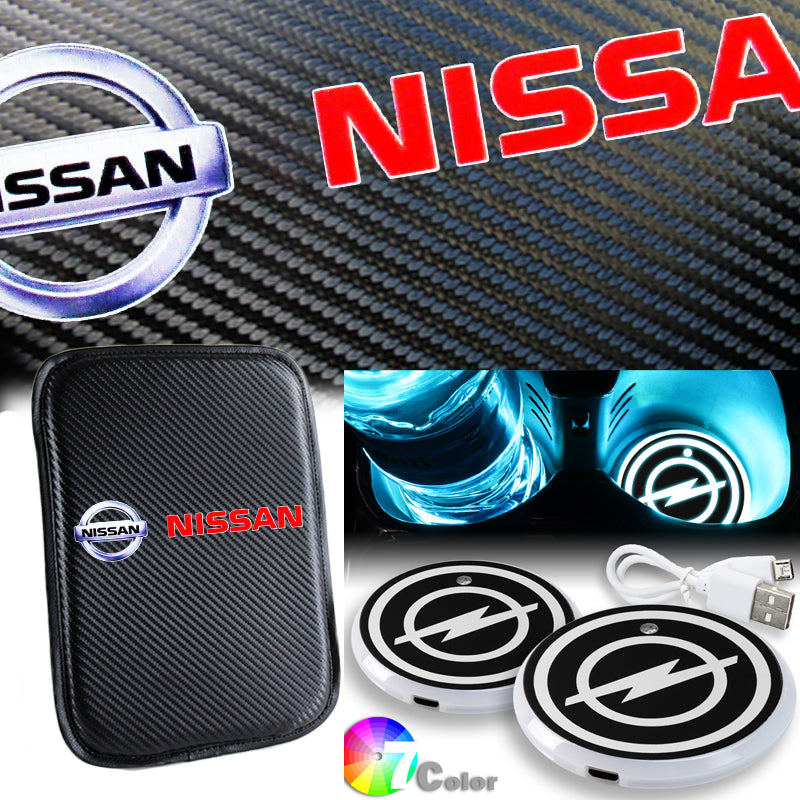 NISSAN 350Z Carbon Fiber Look Car Center Console Armrest Cushion Mat Pad Cover with LED Coasters Combo Set