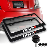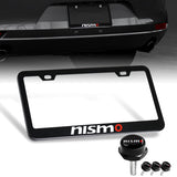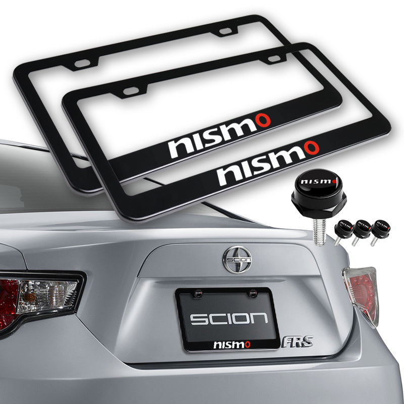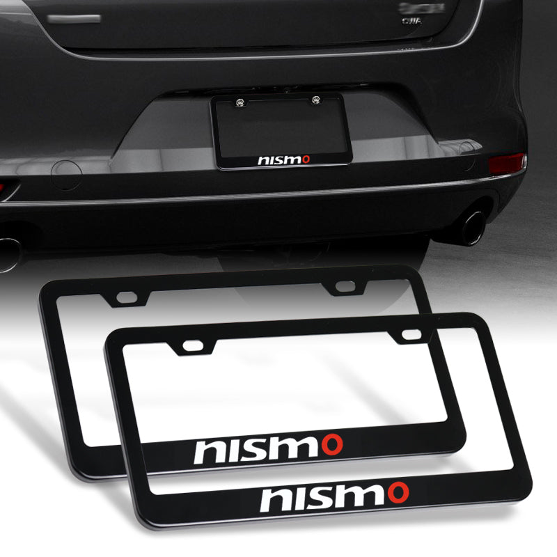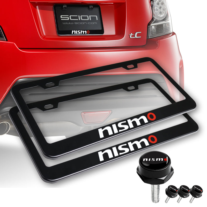 Nissan Nismo 2 pcs Black Stainless Steel License Plate Frame with Caps Bolt Screw Set