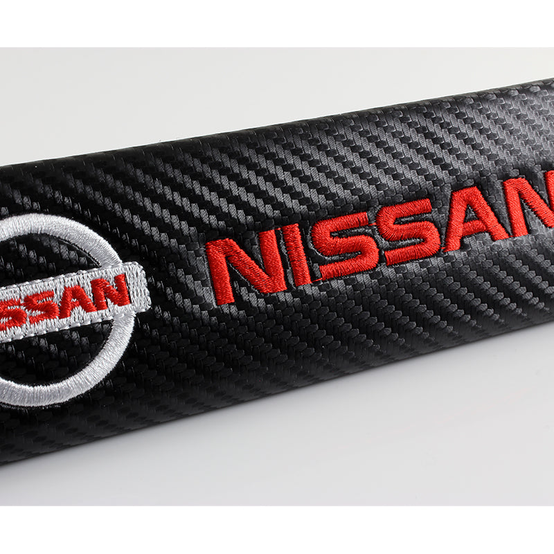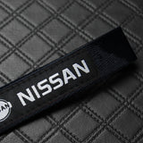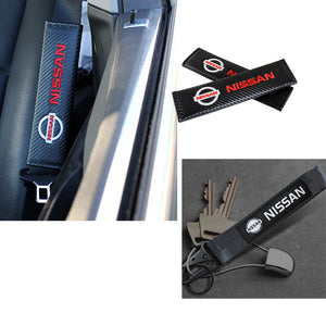 Nissan Set Black Keychain Metal Key Ring with Black Carbon Fiber Look Seat Belt Covers