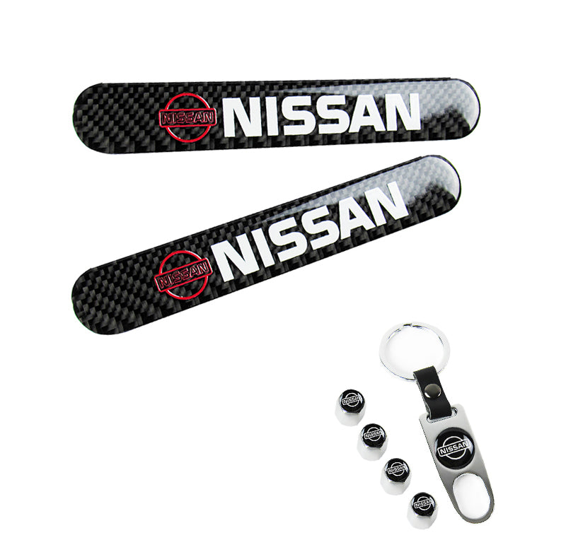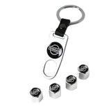 NISSAN Set LOGO Emblems with Silver Tire Wheel Valves Air Caps Keychain - US SELLER
