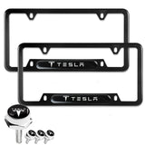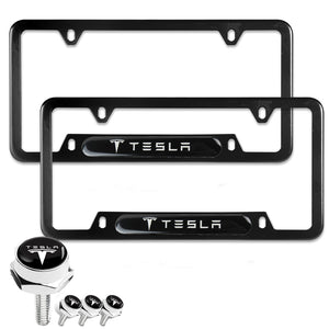 TESLA Stainless Steel Black License Plate Frame 2pcs Brand New SET with Caps Bolt