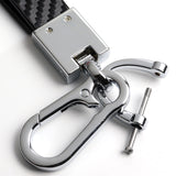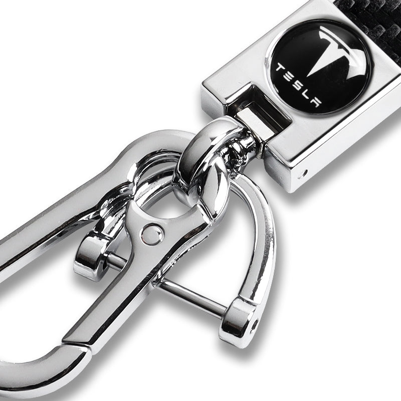 TESLA Universal Chrome 3D Logo Carbon Fiber Look Rare Black Leather Metal Gift Decor Quick Release Lanyard Keychain