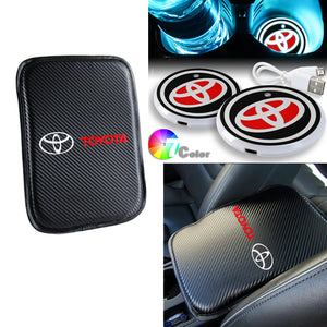 Toyota Car Center Console Armrest Cushion Mat Pad Cover Stitched Embroidery Logo with LED Cup Coaster Set