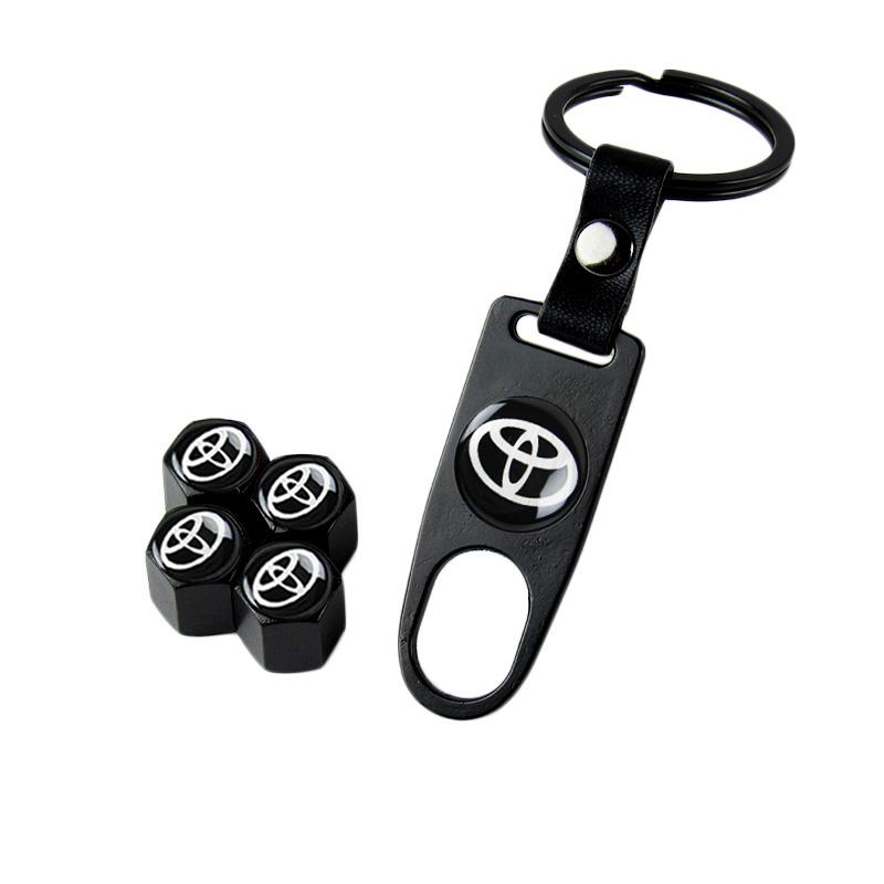 Toyota LOGO Set Emblems with Tire Wheel Valves Air Caps Keychain - US SELLER