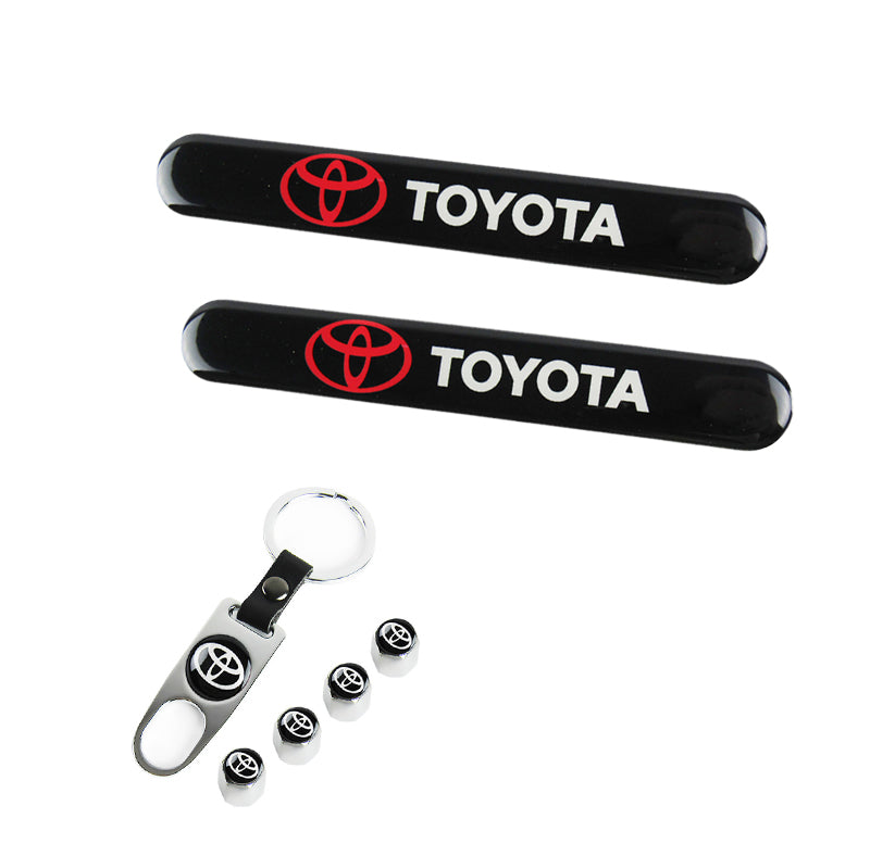 Toyota Set LOGO Emblems with Silver Keychain Tire Wheel Valves Air Caps - US SELLER