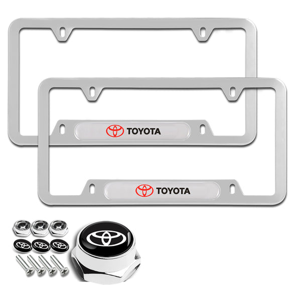TOYOTA Brand New SET Stainless Steel License Plate Frame 2pcs with Caps Bolt