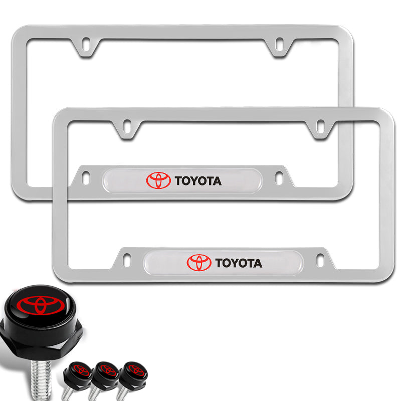 TOYOTA Stainless Steel License Plate Frame 2pcs with Caps Bolt Brand New SET