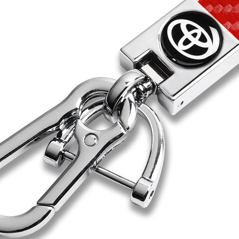 TOYOTA SUPRA COROLLA Camry Universal Chrome 3D Logo Carbon Fiber Look Red Leather Metal Gift Decor Quick Release Lanyard Keychain