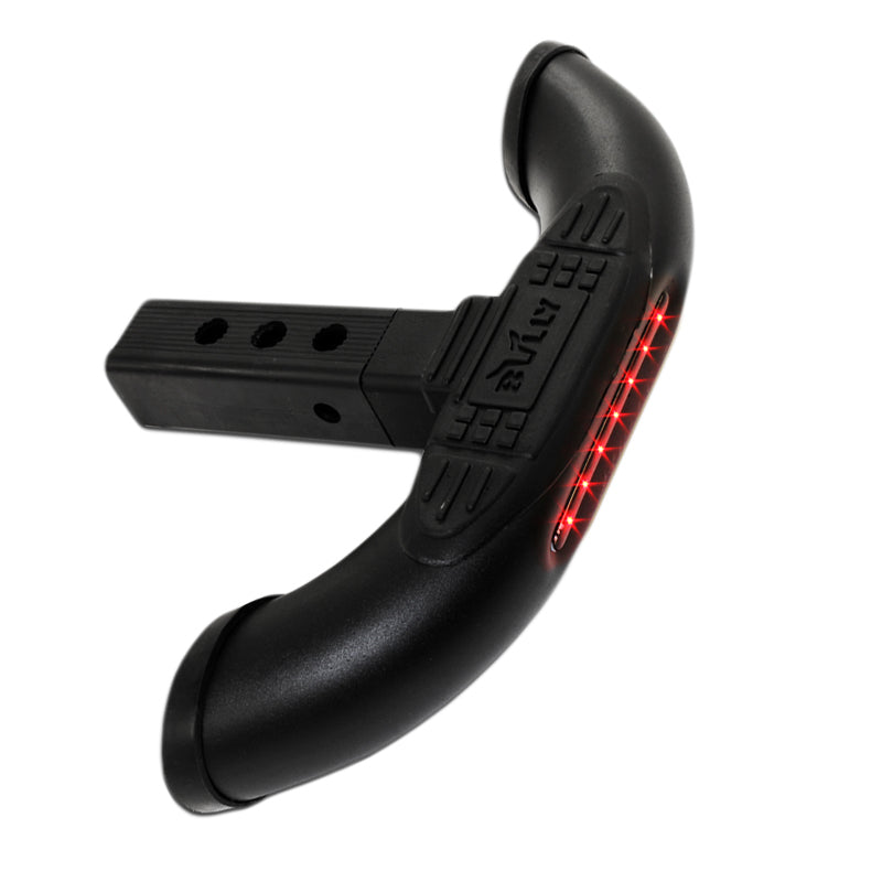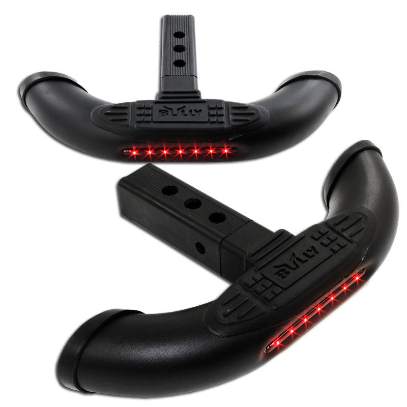 UNIVERSAL BULLY BLACK STEEL W/ LED BRAKE TAIL LIGHT HITCH REAR TOW TRAILER BACK STEP BAR 1.25" & 2"
