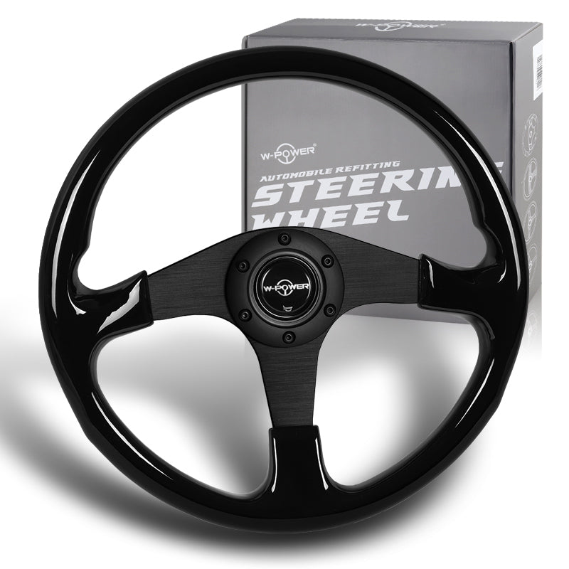- 350mm 14 Inches W-Power 3-Spoke Matte Black Center Steering Wheel