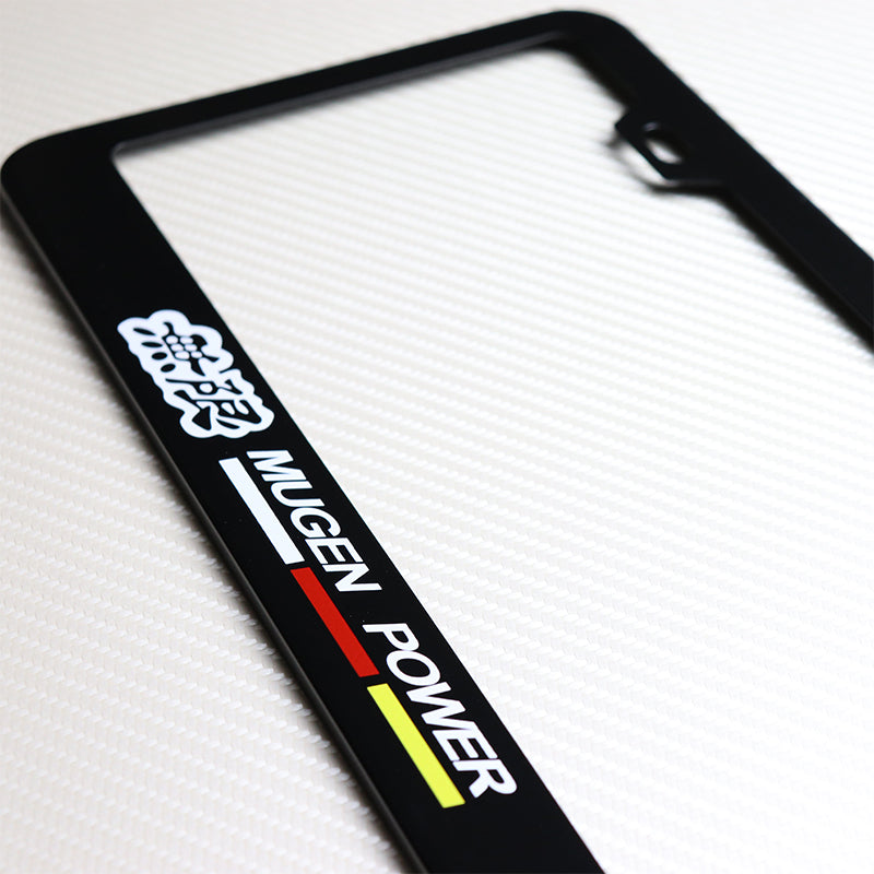 Mugen Black Stainless Steel License Plate Frame with Caps x2