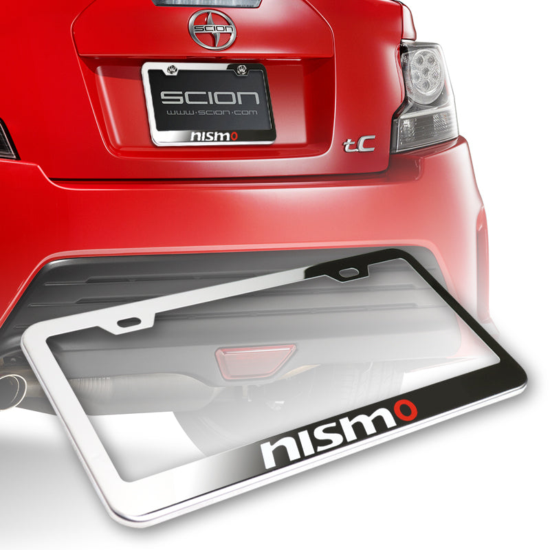 Nissan Nismo Chrome Stainless Steel License Plate Frame with Caps x2