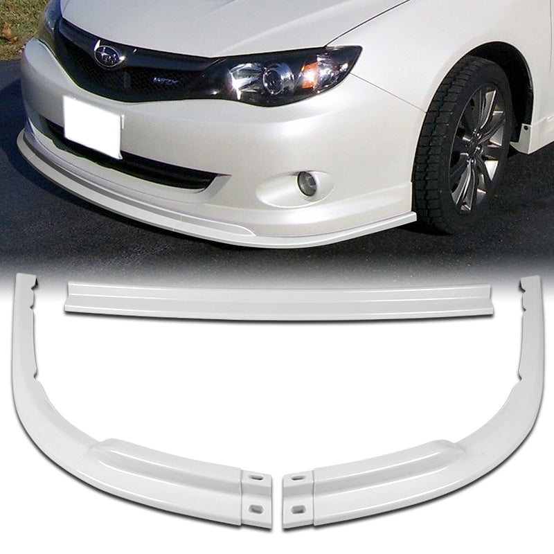 2008-2010 Subaru Impreza WRX Premium CS-Style Painted White 3-Piece Front Bumper Body Spoiler Splitter Lip Kit with Keychain