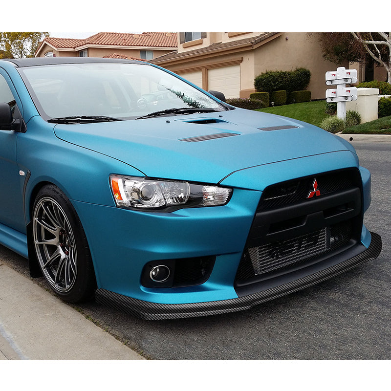 2008-2015 Mitsubishi Evolution X R-Style Carbon Look 3-Piece Front Bumper Body Spoiler Splitter Lip Kit with Lanyard Set