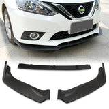 2016-2019 Nissan Sentra Unpainted Matte Black 3-Piece Front Bumper Body Spoiler Splitter Lip Kit