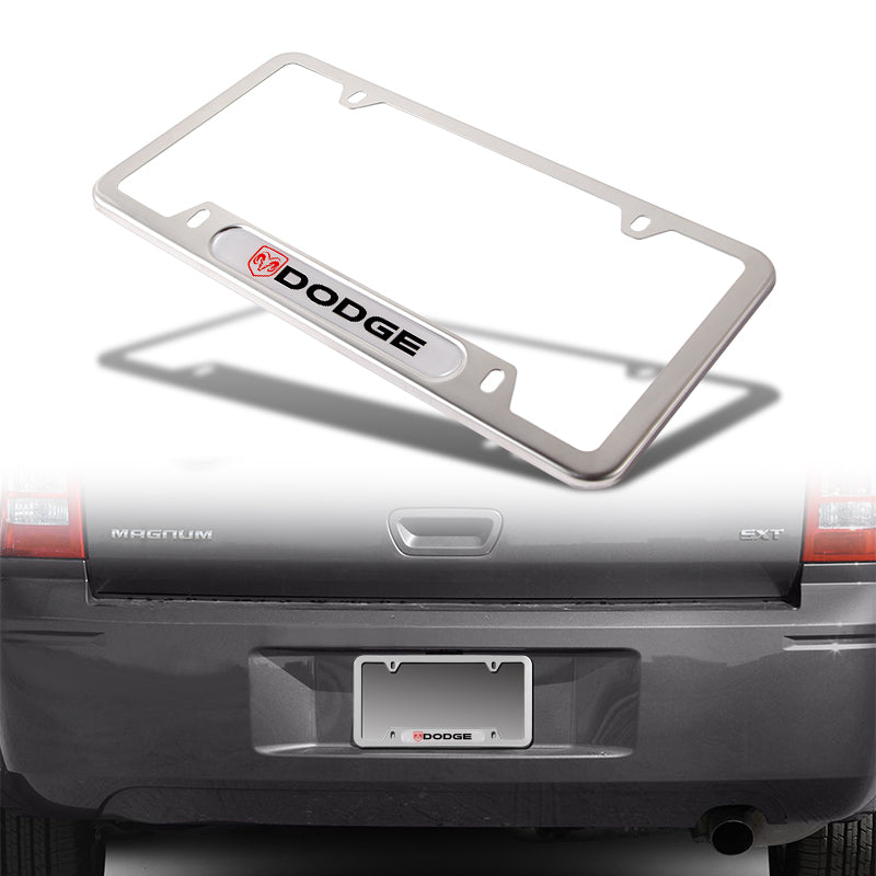 2PCS For DODGE RAM NEW Silver Metal Stainless Steel License Plate Frame