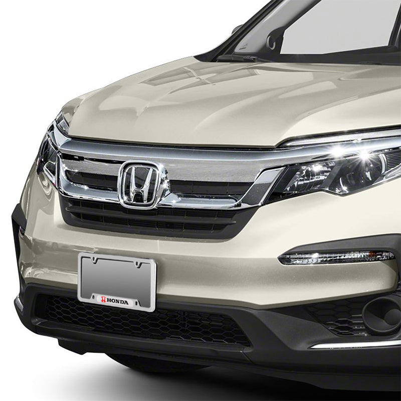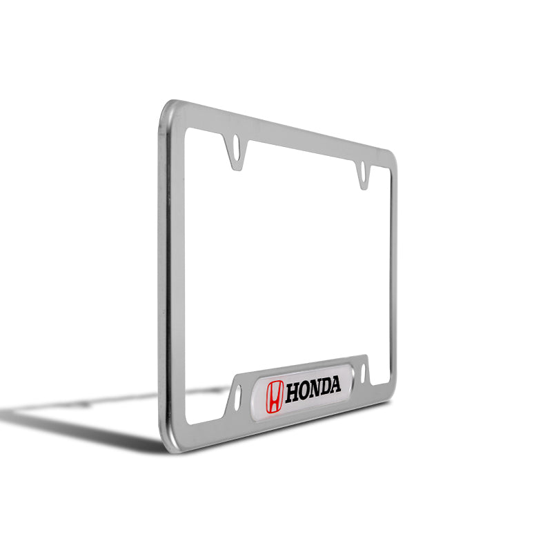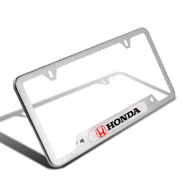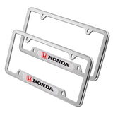 2PCS HONDA Stainless Steel License Plate LOGO Silver Metal Frame NEW