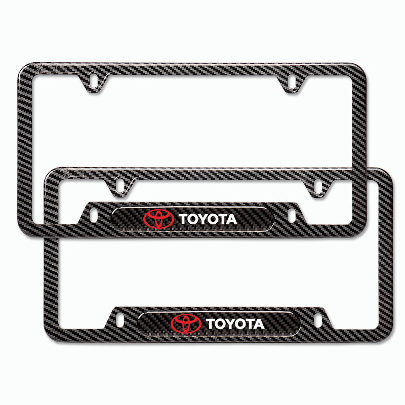 2PCS TOYOTA Black Carbon Fiber License Plate Frame Stainless Steel Metal