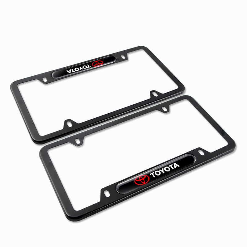 2PCS TOYOTA Black Stainless Steel Metal License Plate Frame