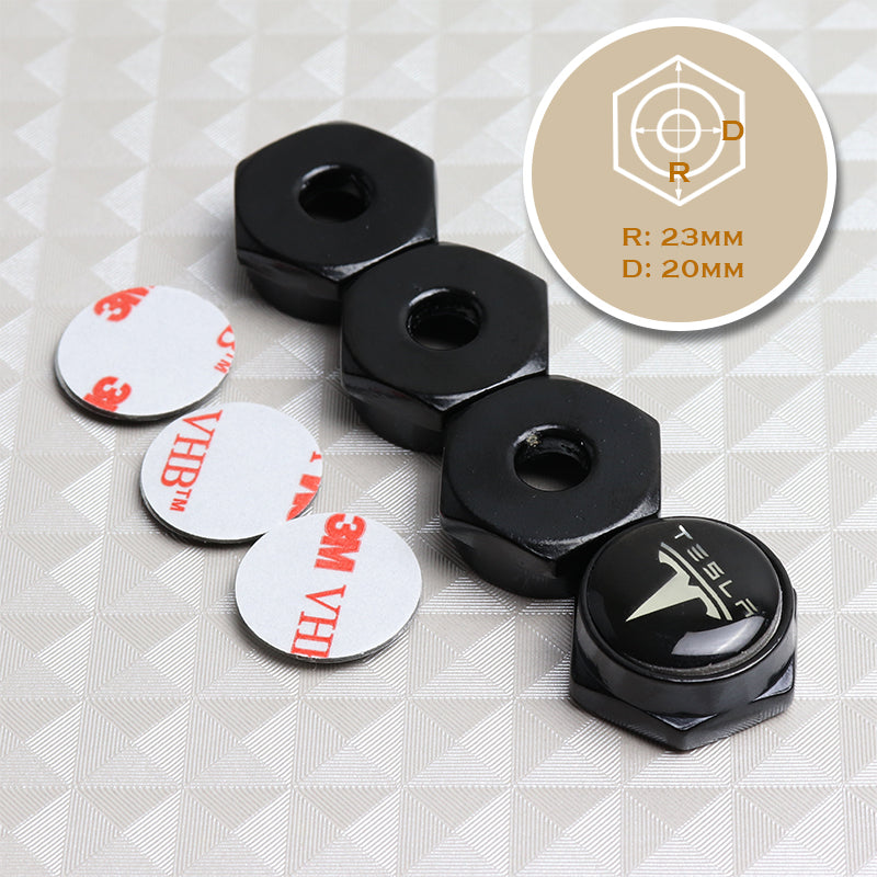 4PCS For TESLA Racing Car License Plate Frame Black Screw Bolt Cap Cover Bolt