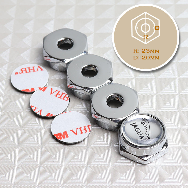 4PCS JAGUAR CHROME Car License Plate Frame Black Screw Bolt Cap Cover Screw Bolt
