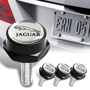 4PCS JAGUAR Racing Car License Plate Frame Black Screw Bolt Cap Cover Screw Bolt