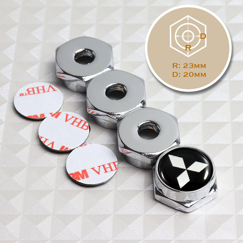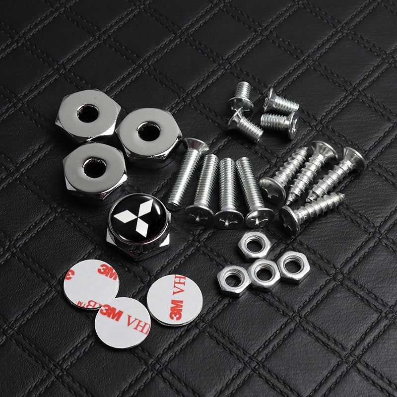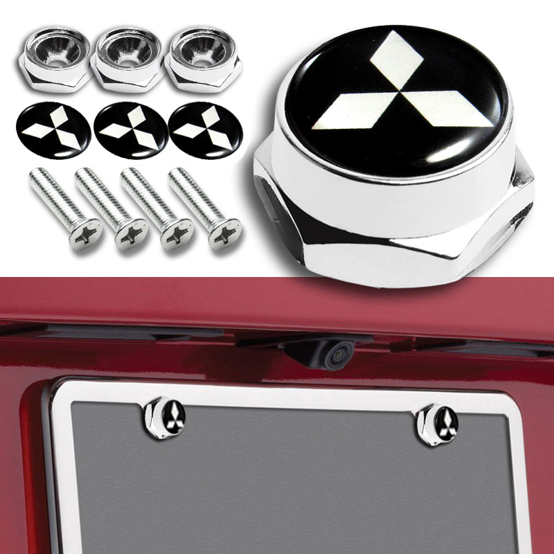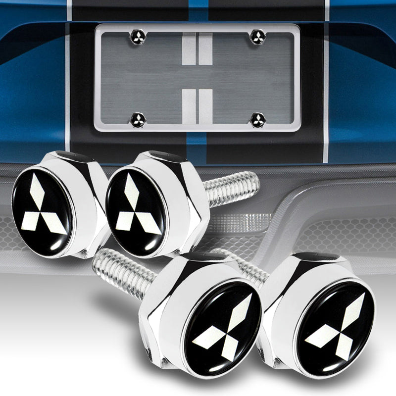 Mitsubishi 4pcs New Chrome Car License Plate Bolts Frame Screw Caps Covers
