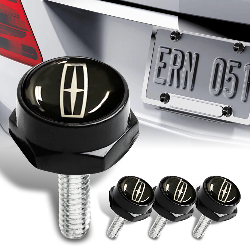 4x Lincoln Black Car License Plate Frame Screw Bolt Cap Cover Screw Bolts Nuts