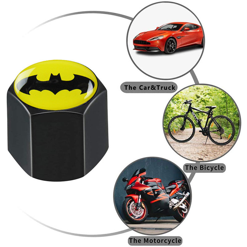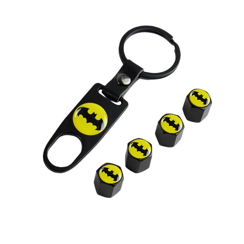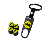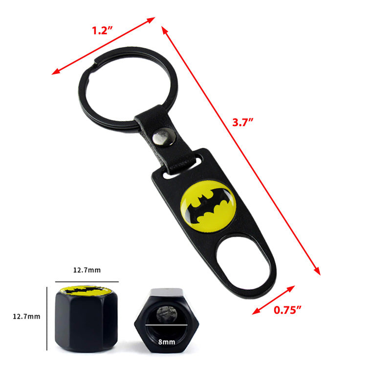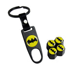 Batman Car Wheel Tire Valves Dust Stem Air Caps Keychain Emblem KEY FOB Black Set - US SELLER
