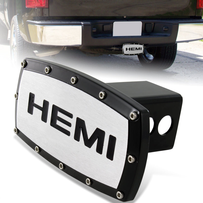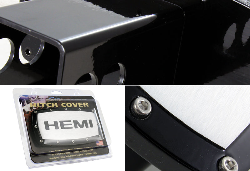 Black DODGE CHRYSLER JEEP HEMI Engraved Billet Hitch Cover Plug Cap For 2" Trailer Receiver with ALLEN BOLTS DESIGN