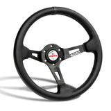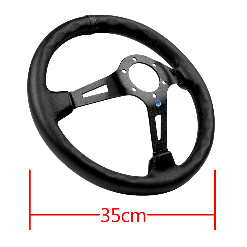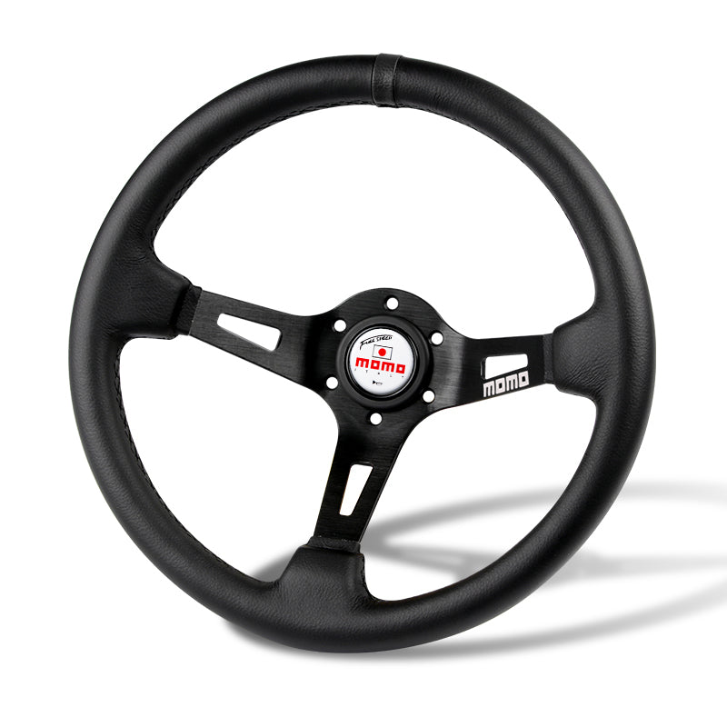 • Create an impression when passengers come on board your souped-up vehicle with this 350mm MOMO style steering wheel. Its Deep dished design complements its classy Black stitching. Made from genuine Microfiber leather and lightweight alloy for the spoke. It will no doubt create an impression!