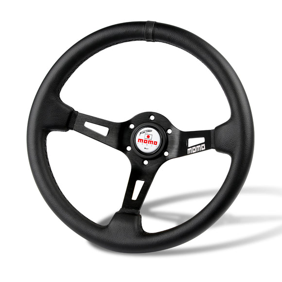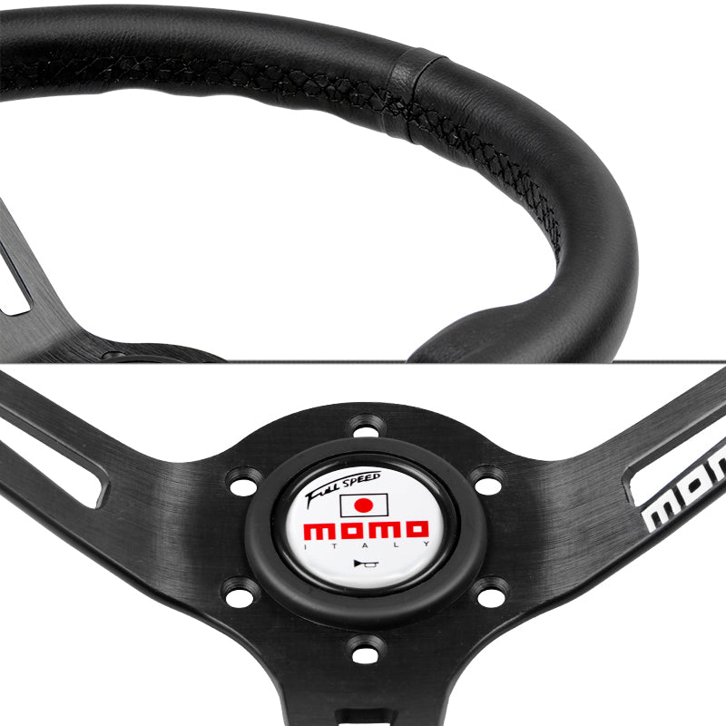 Black Line 350mm MOMO Racing Steering Wheel Microfiber Leather with MOMO Horn Button