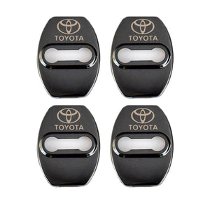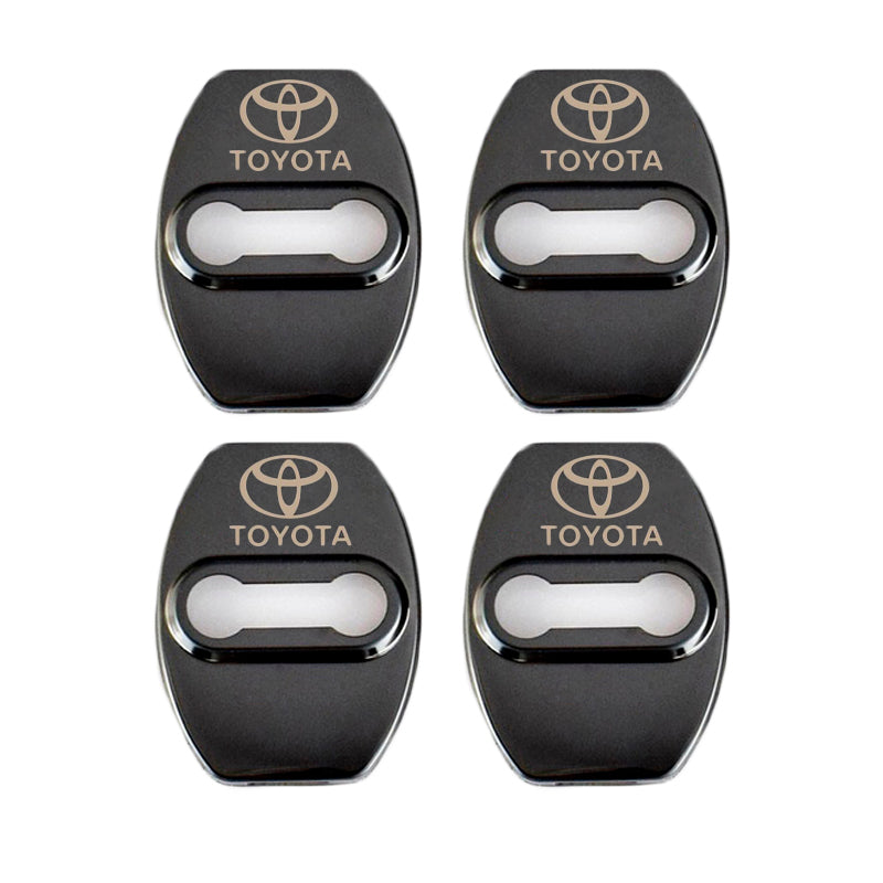 Black TOYOTA Stainless Steel Door Lock Door Striker Cover Set - 4 pcs