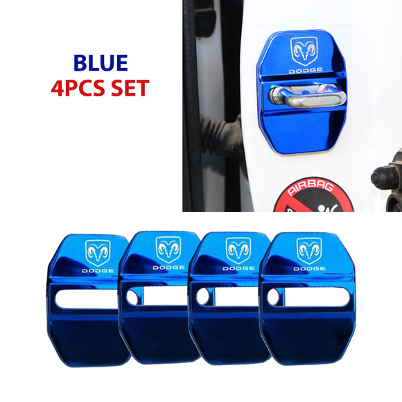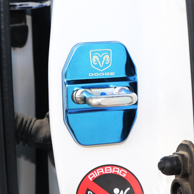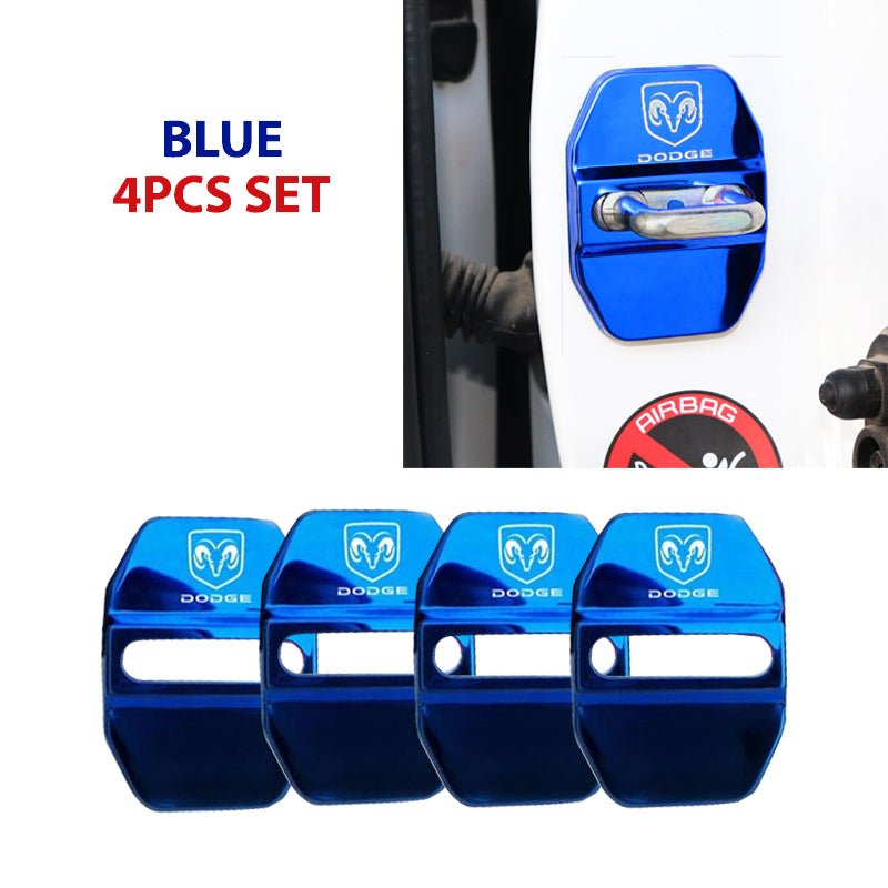 Blue DODGE Stainless Steel Door Lock Door Striker Buckle Lock Protective Cover Set - 4 pcs