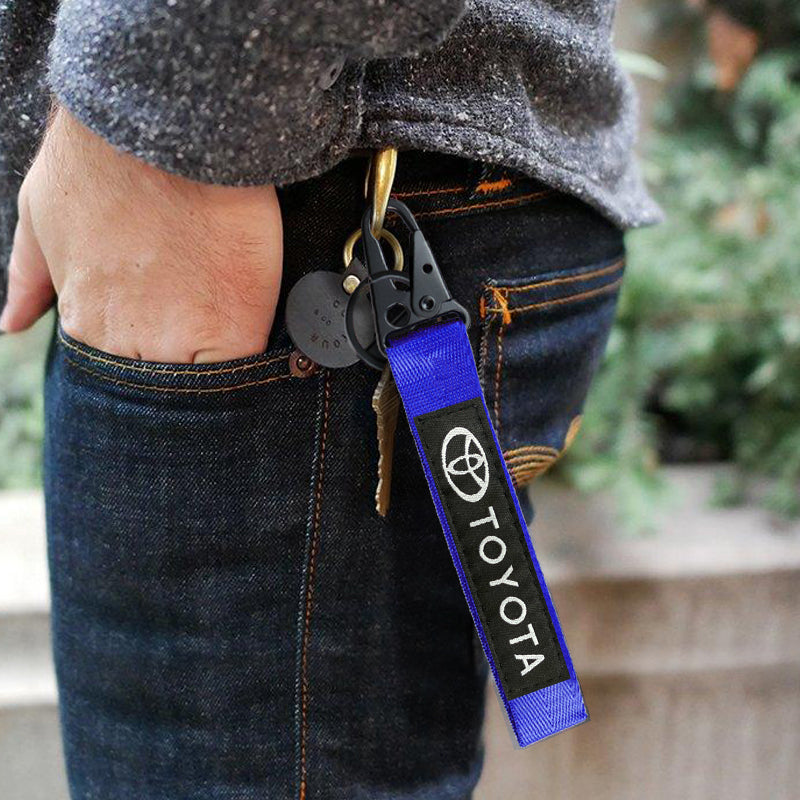 Blue TOYOTA MOTORS Racing Keychain Metal Key Ring Hook Strap Nylon Lanyard-Universal