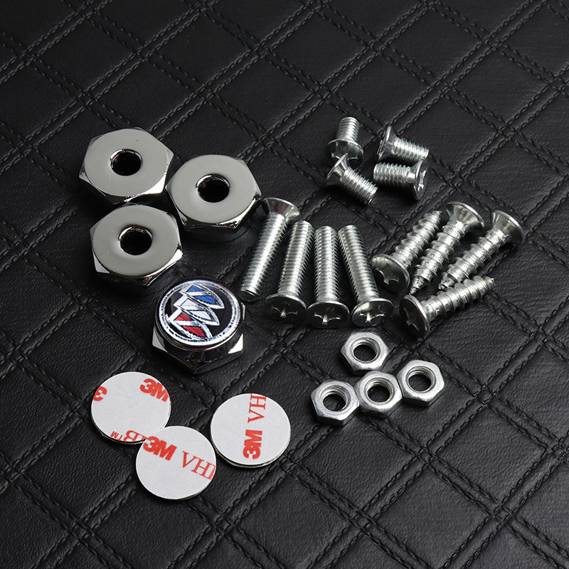- 4Pcs/set License Plate Screws Bolts with logo stickers + 3 kinds of screws