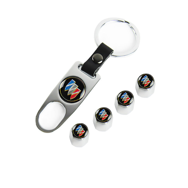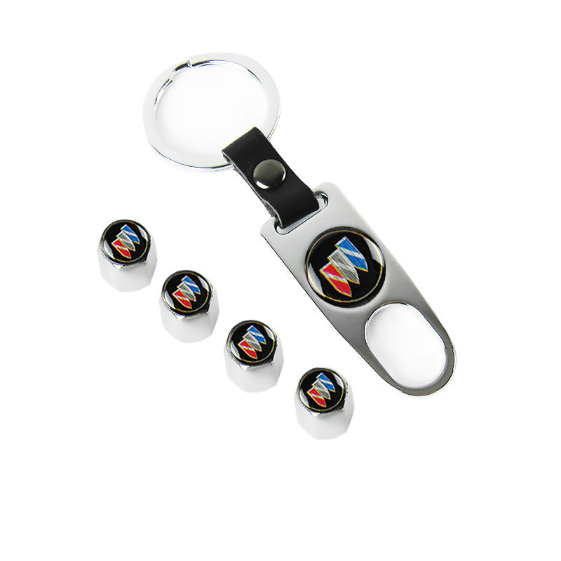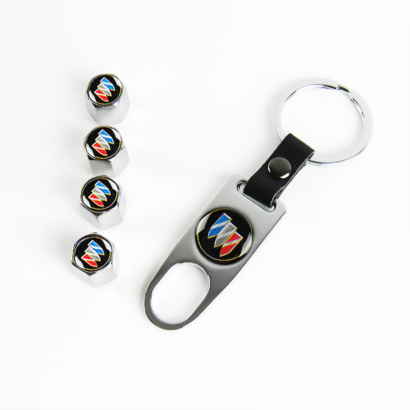 BUICK Car Wheel Tire Valves Dust Stem Air Caps Keychain Emblem KEY FOB Silver Set - US SELLER
