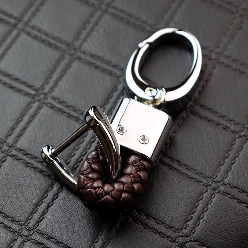 Honda Small Brown BV Style Calf Leather Keychain (Red H)