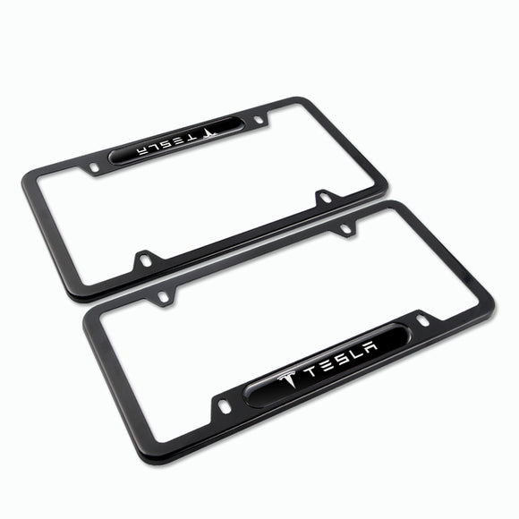 2PCS Tesla Black Stainless Steel Metal License Plate Frame