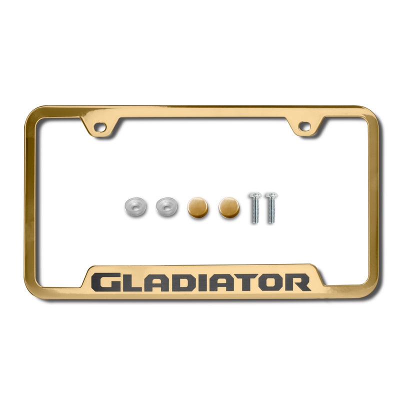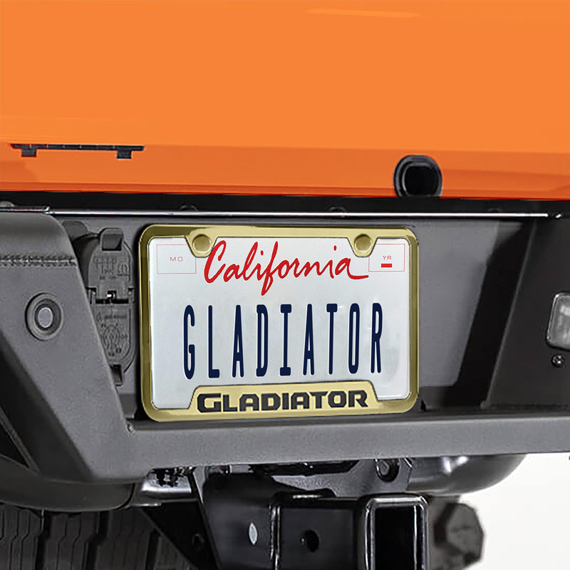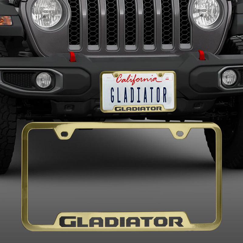 Au-Tomotive Gold for JEEP GLADIATOR Stainless Steel Mirrored Gold Laser Etched License Plate Frame - GF.GLAD.EG