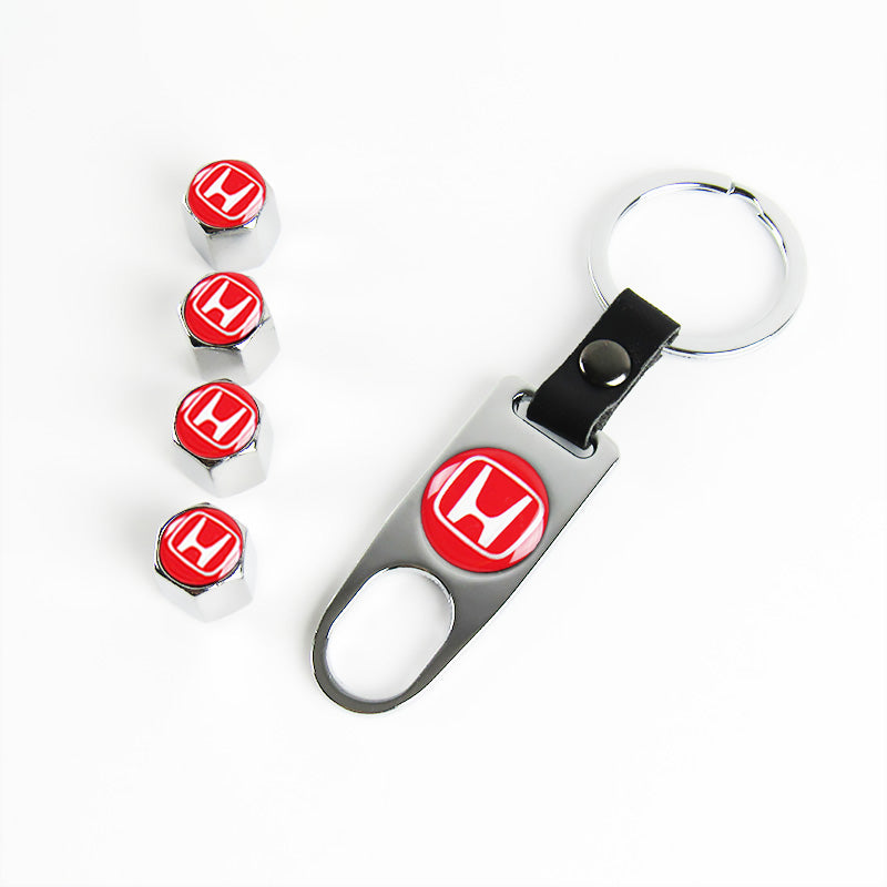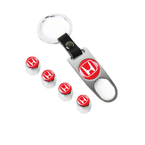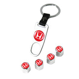 Honda Civic Car Wheel Tire Valves Dust Stem Air Caps Keychain Emblem KEY FOB Silver Set - US SELLER