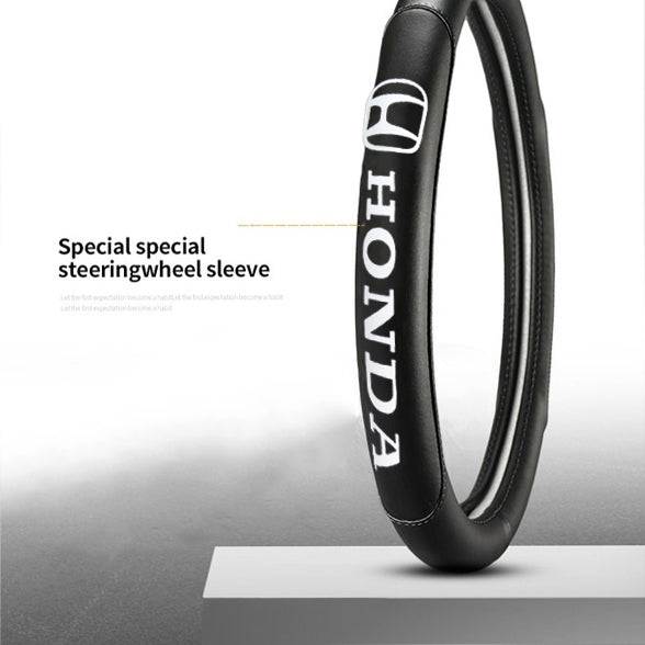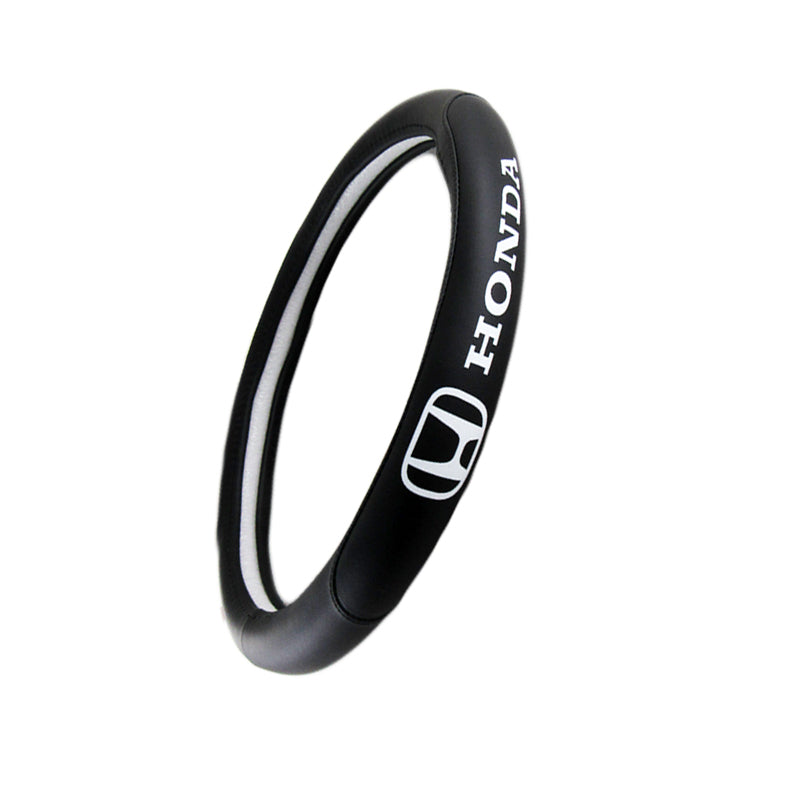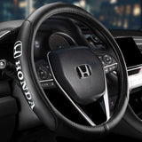 Honda Black Set Genuine Leather 15" Diameter Car Auto Steering Wheel Cover with STEERING EMBLEM BADGE