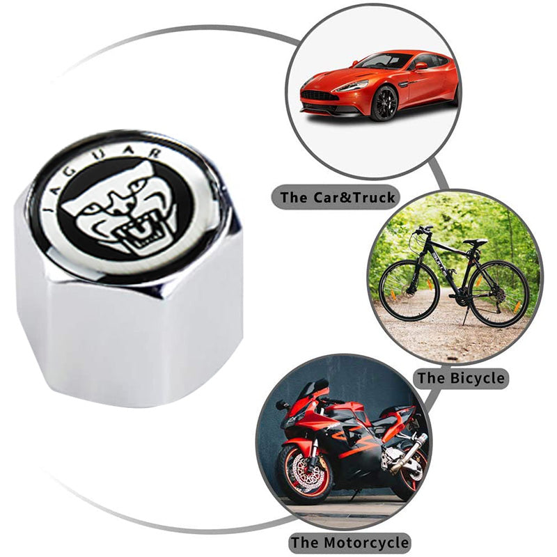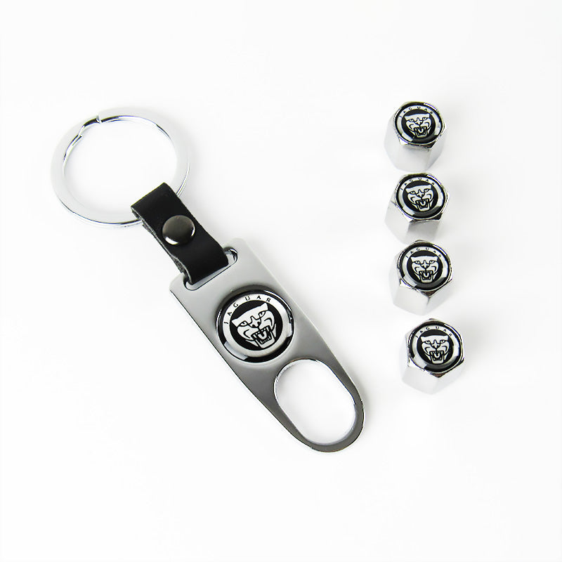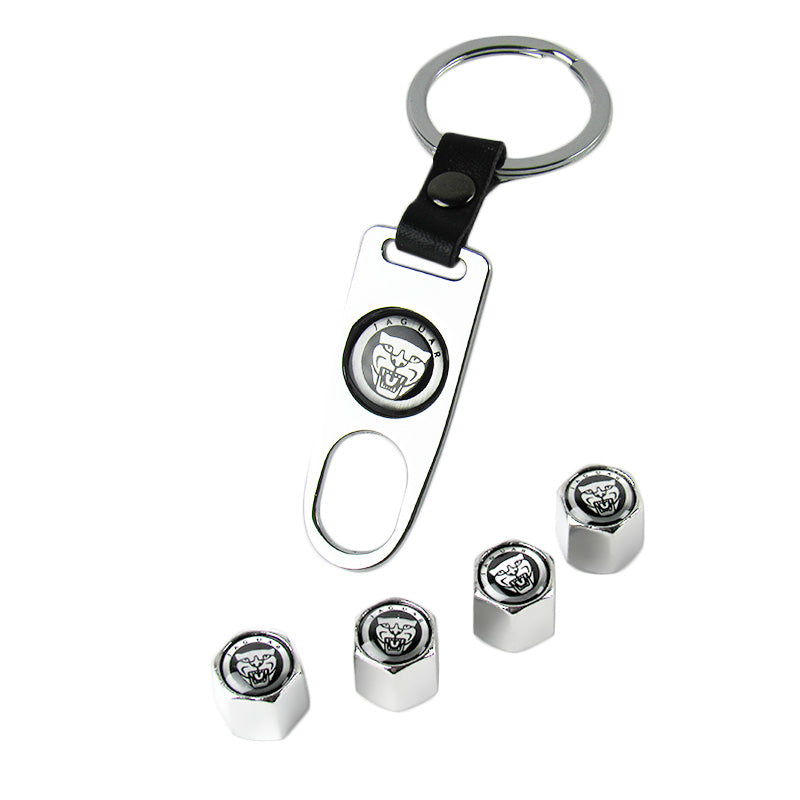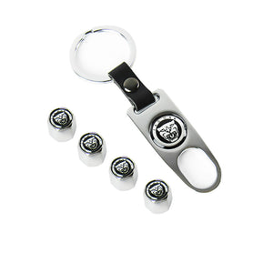 JAGUAR Car Wheel Tire Valves Dust Stem Air Caps Keychain Emblem KEY FOB Silver Set - US SELLER