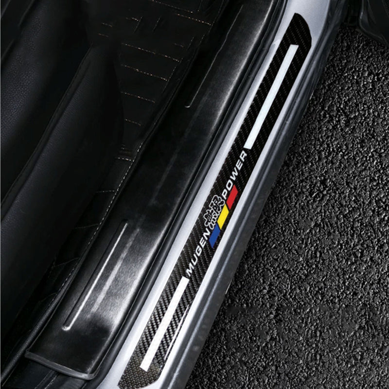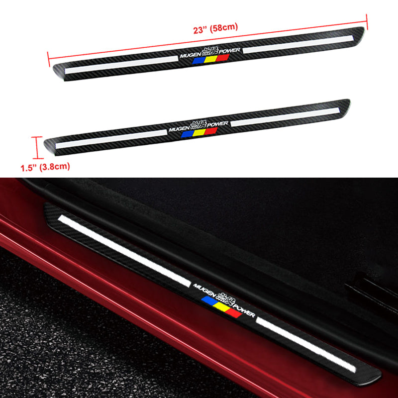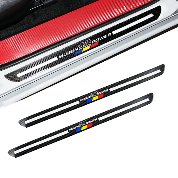 JDM Mugen Carbon Fiber Car Front Door Welcome Plate Sill Scuff Cover Decal Sticker 2 pcs Set