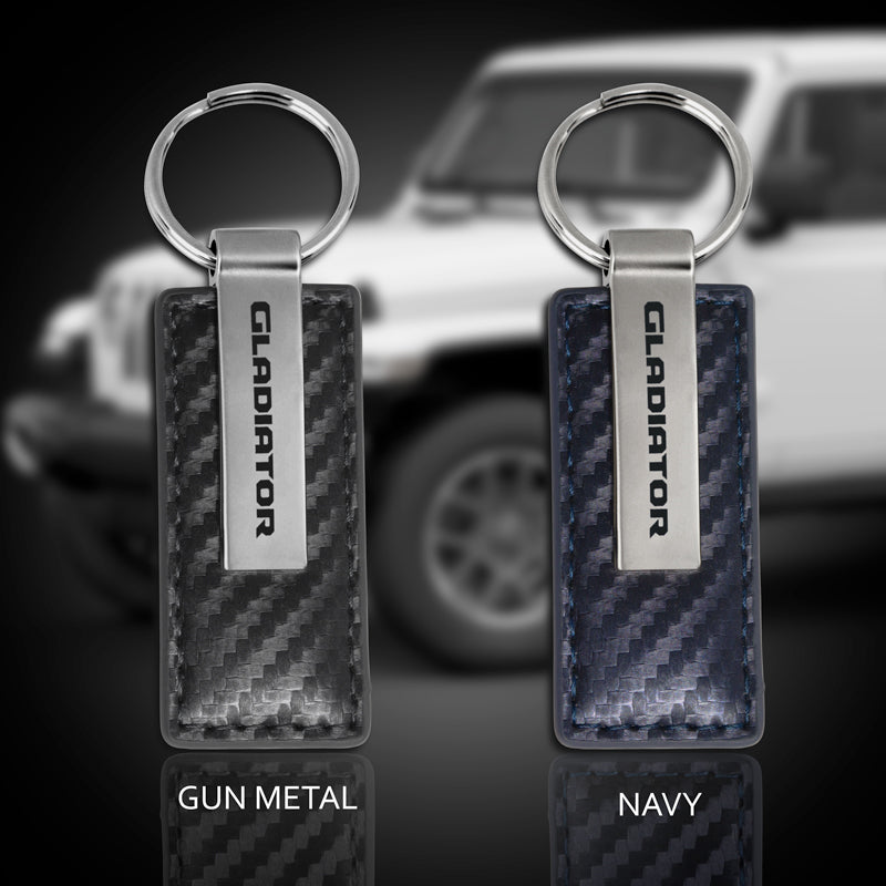 Jeep Gladiator Navy Carbon Leather Key Fob Key Chain Ring OFFICIAL LICENSED Au-Tomotive Gold