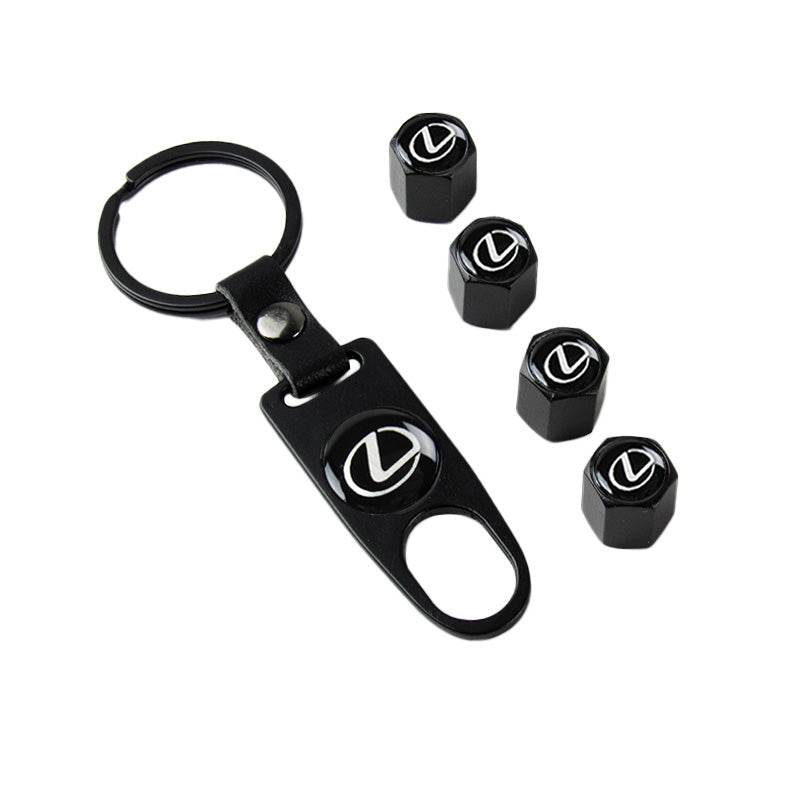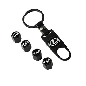 Lexus Universal Car SUV Wheel Tire Valves Dust Stem Air Caps Keychain Emblem Black Set