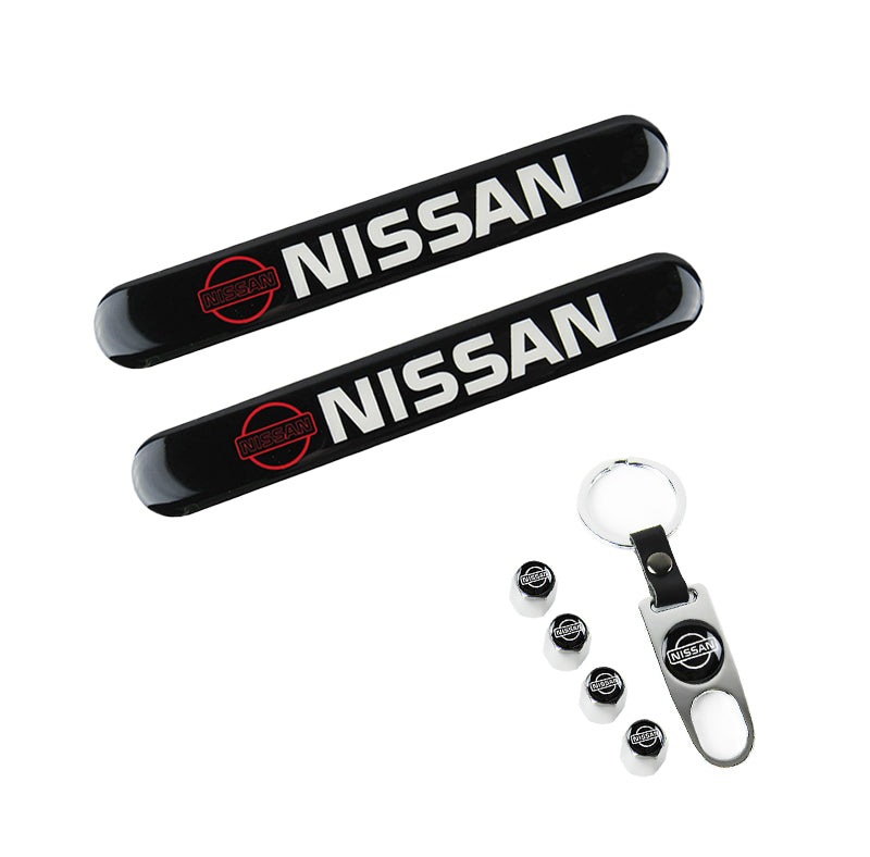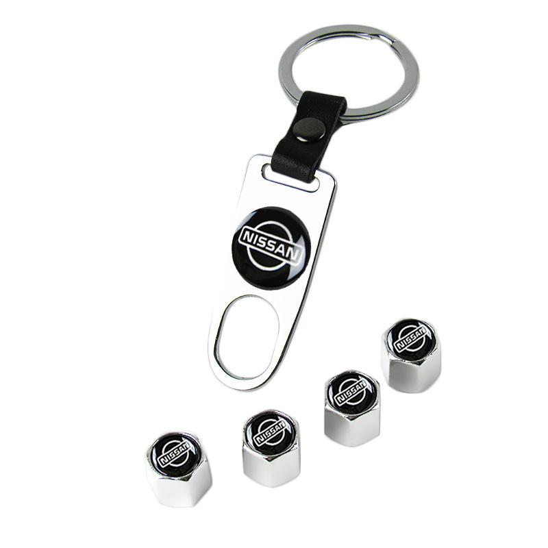 NISSAN Set LOGO Emblems with Silver Tire Valves Wheel Air Caps Keychain - US SELLER