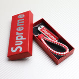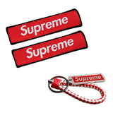 Supreme3M Set Embroidered Logo Black Seat Belt Covers with Metal Pendant with Calf Leather Keychain For Honda Toyota