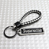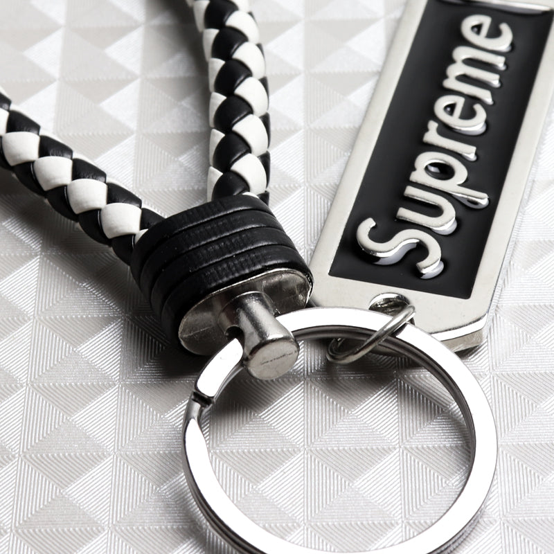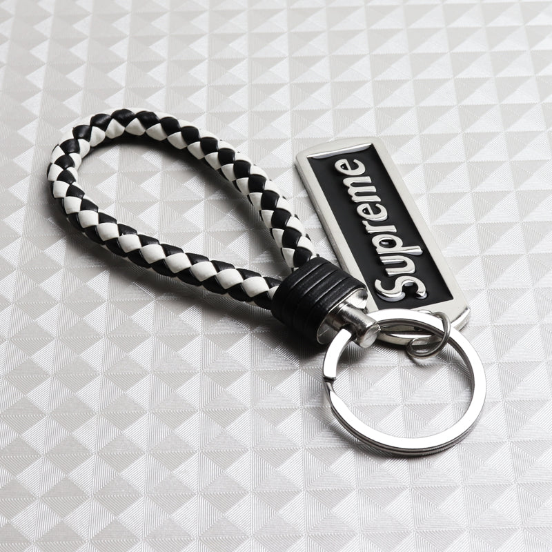 • Metal Tag with Bi-Fold Crafted in Sleek Calf Leather Weave Keychain X 1